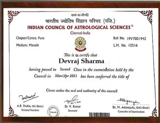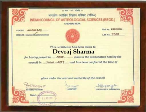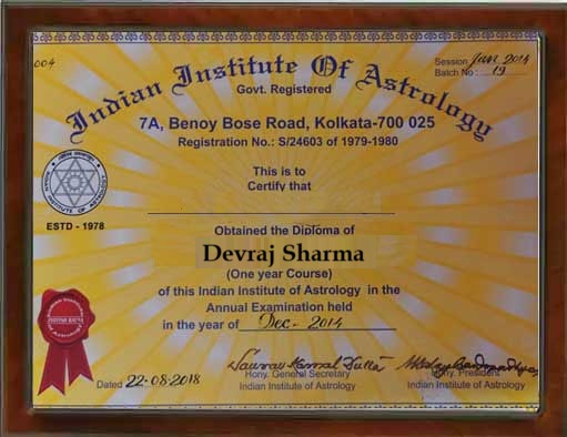 Astrologer Devraj Sharma has worked a lot in helping people by solving their problems. Throughout his working experience, he has won awards for his work, knowledge and experience. He never wants any person to stay deprived from astrological remedies. He is always active in astrology. He took parts in the seminars and always learns something new and interesting. He is excelling in solving numerous problems of the people like: