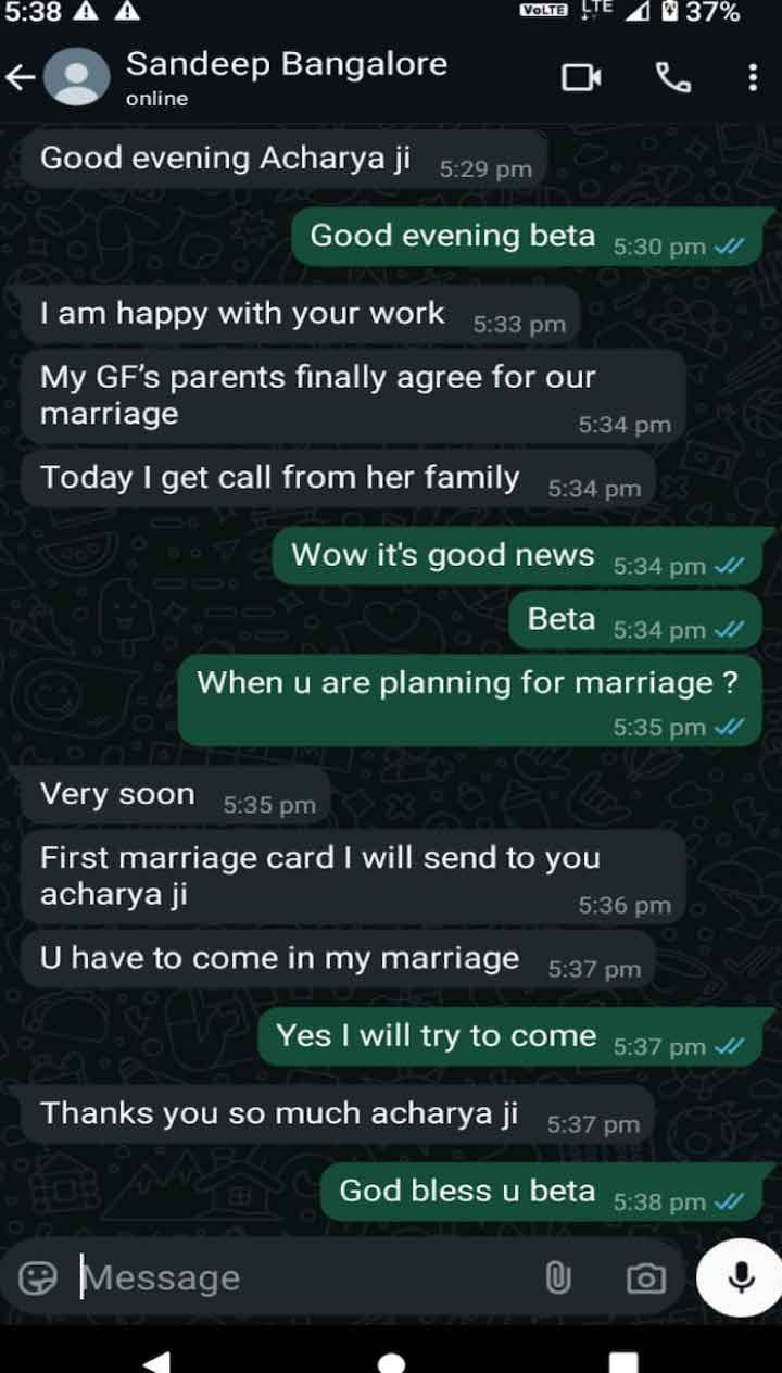My parents was against my marriage and I do need their approval and this makes me to take Astrologer Devraj Sharma ji help that has made easy to agree my parents.